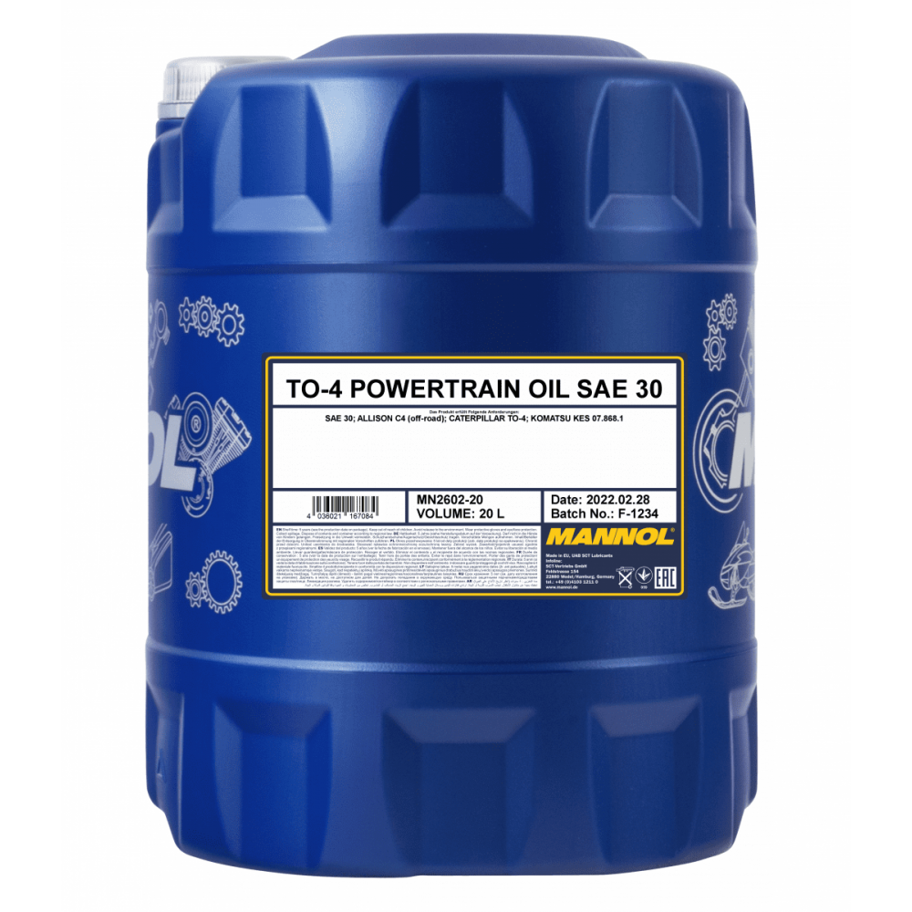 MANNOL TO-4 Powertrain Oil SAE 30 — специальное всесезонное трансмиссионно-гидравлическое минеральное масло, предназначенное для использования в гидравлических системах, трансмиссиях и коробках передач (в то числе силовых), бортовых редукторах прочих агрегатах внедорожной техники с маслопогруженными тормозами (муфтами) и без.